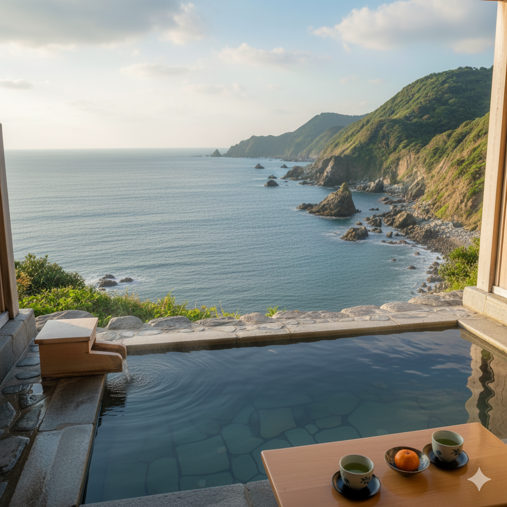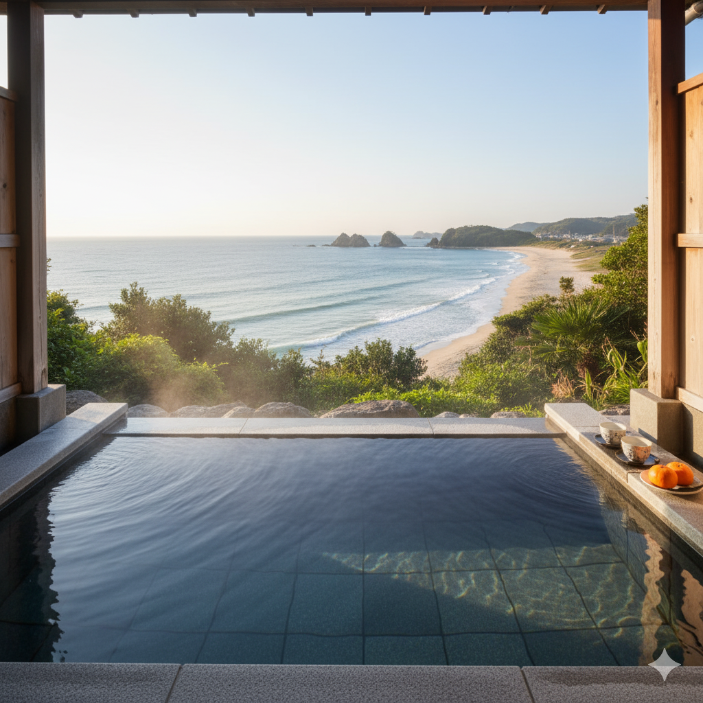 勝浦温泉で過ごす50代夫婦の特別な休日。太平洋を一望する露天風呂付き客室で、ふたりの時間を紡ぎ直しませんか?本物の贅沢を知る大人のための、上質な温泉宿5軒を厳選してご紹介します。 -