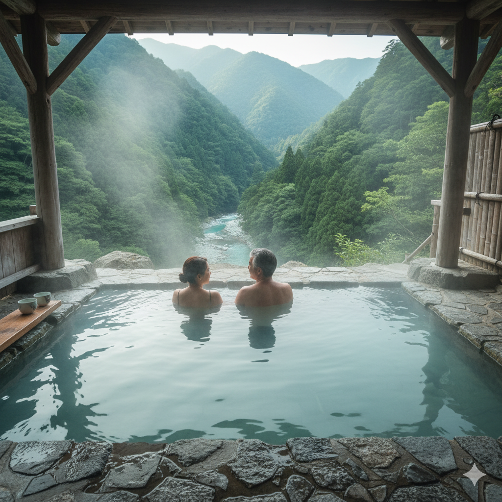 50代夫婦のための湯の峰温泉旅行をご提案。世界遺産の湯に癒される、露天風呂付き客室のある上質な宿を厳選しました。ただ泊まるだけではない、ふたりの時間を深く紡ぎ直す特別な旅へ。歴史、美食、絶景、あなたに合う一軒がきっと見つかります。 -