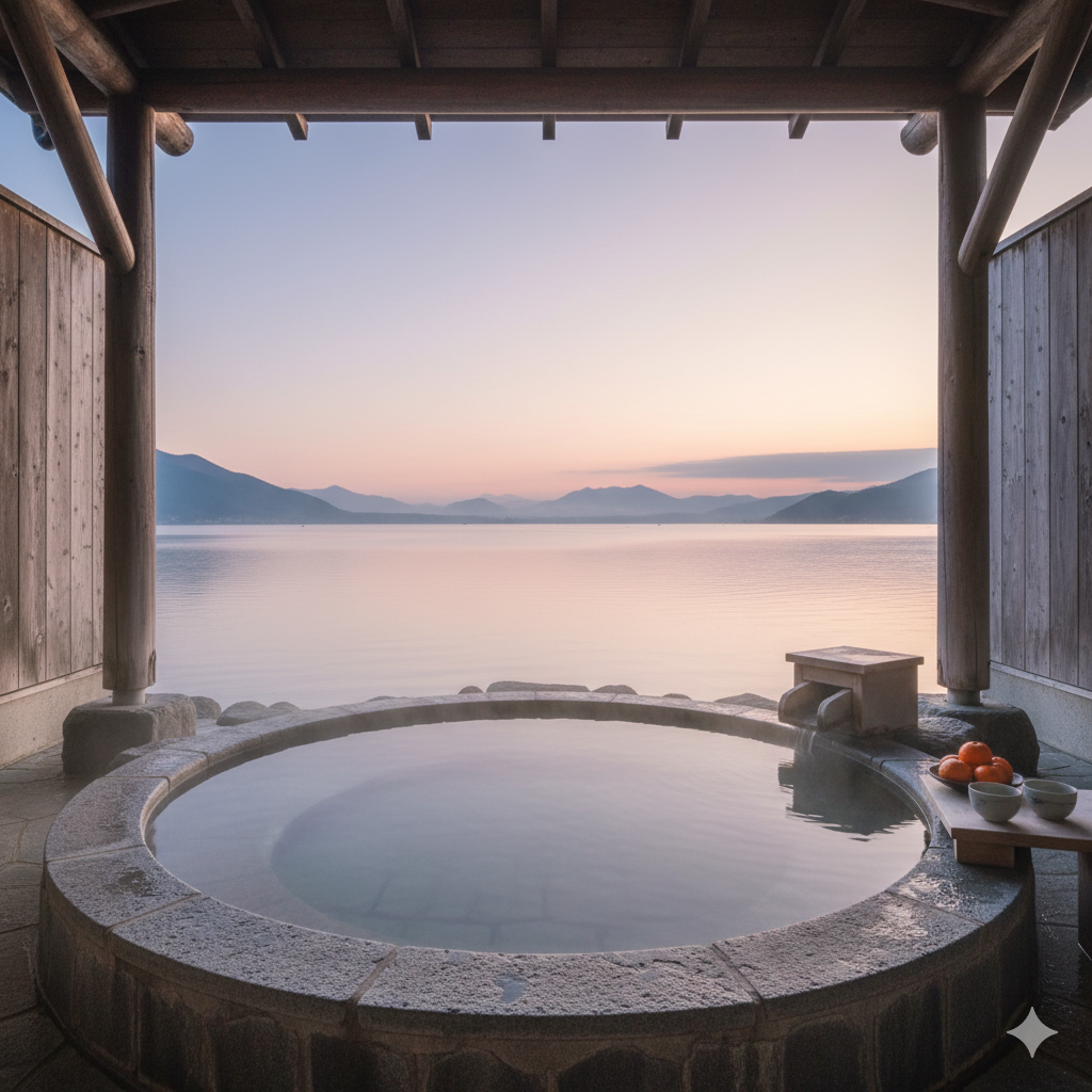 雄琴温泉で過ごす50代夫婦のための特別な時間。琵琶湖を望む露天風呂付き客室で、誰にも邪魔されない休日を。美食と絶景が彩る、ふたりの絆を紡ぎ直す上質な宿をご紹介します。 -